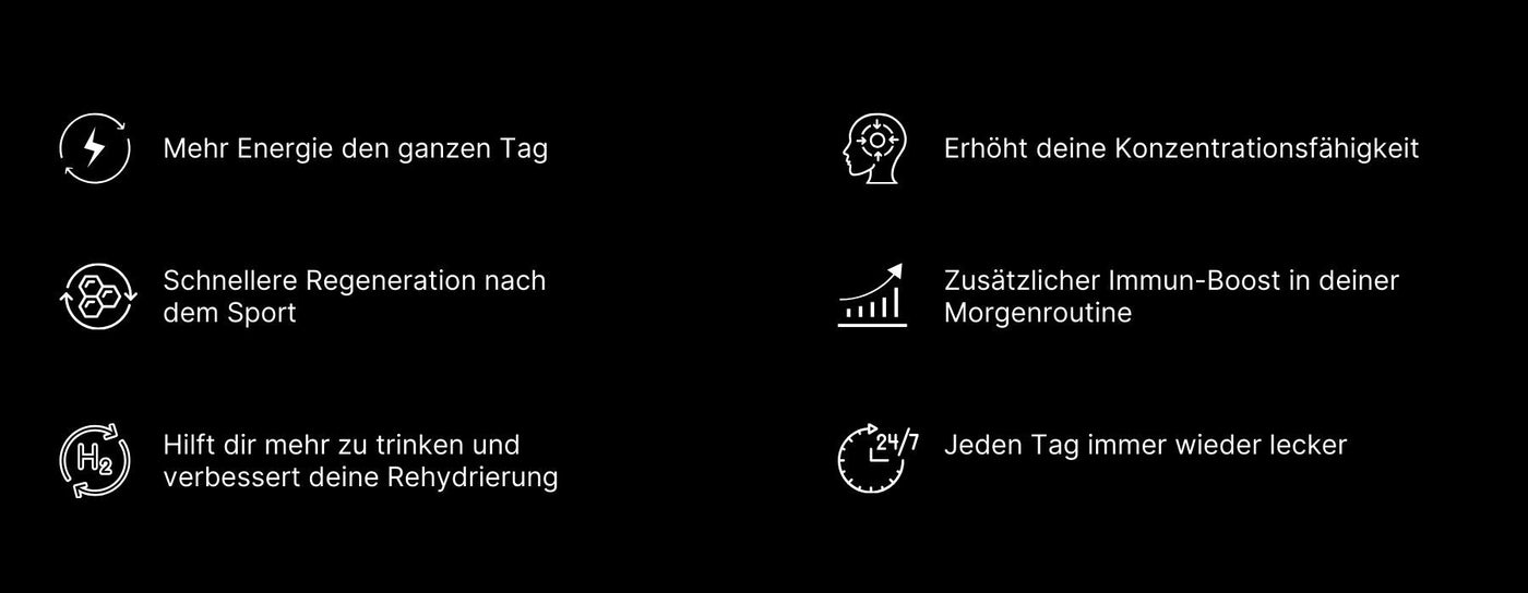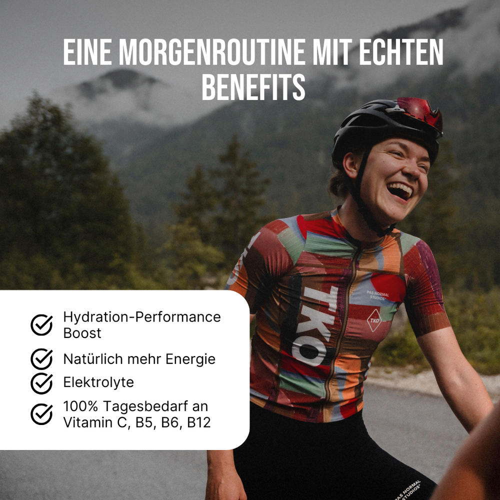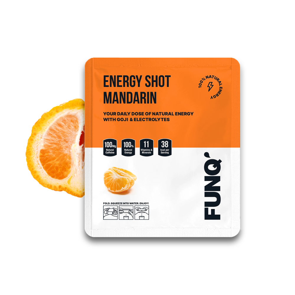 Der Energy Shot Mandarin mit natürlichem Koffein, Grünem Tee, Elektrolyten und 100% deines Tagesbedarfs an Vitamin C, B5, B6 & B12 vereint höchste Funktionalität aus natürlichen Inhaltsstoffen. Unterstützt gezielt einen aktiven Lifestyle.